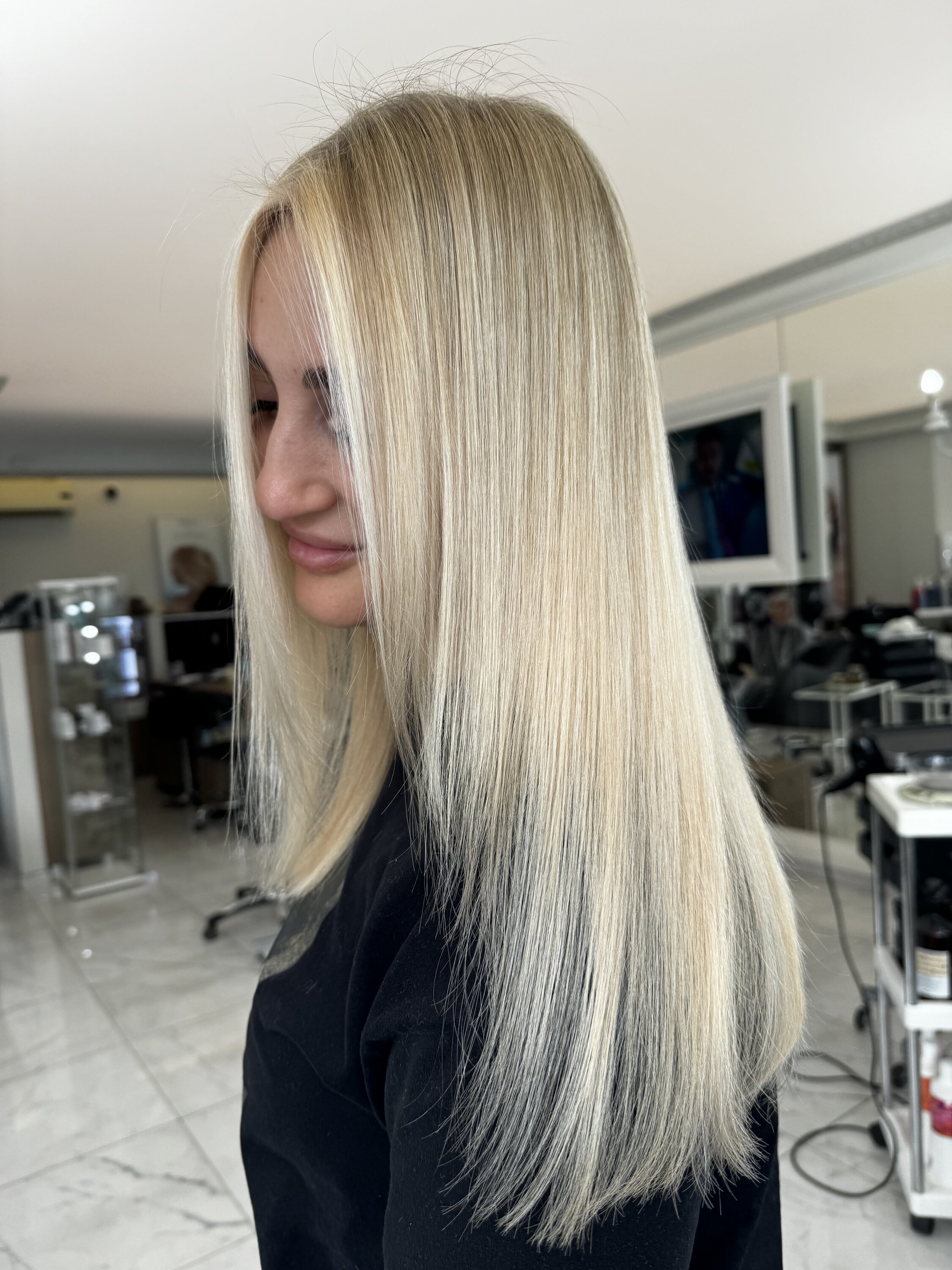Мне очень нравится, как выглядят мои волосы после окрашивания в блонд! Парикмахер — настоящий профессионал, она очень приятная и хорошо объясняет все тонкости процесса.