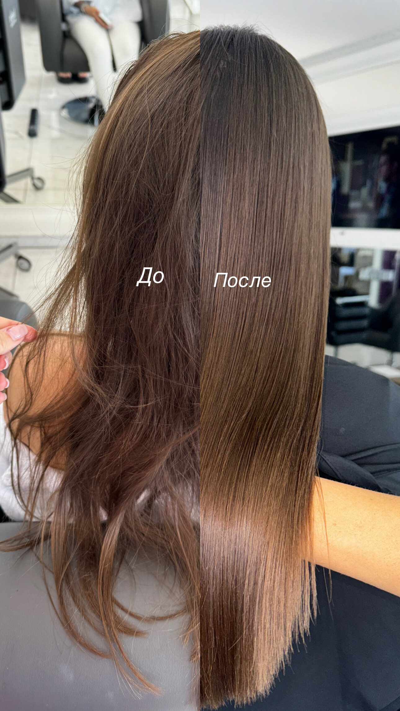 Моя боженька волос, они стали как из рекламы)делаем безамиачное тонирование для блеска, и они идеальные😍 Полностью разобрали и подобрали уход домой🙂 Раньше делала кератин, и только сейчас поняла какое это зло, и что уходом можно сделать результат куда круче, и они живые и здоровые